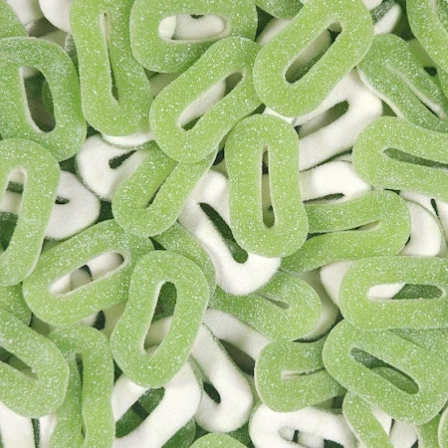 Les bonbons Apple Rings sont un favori rafraîchissant parmi nos assortiments de bonbons à la cuillère et Pick & Mix ! Ces bonbons moelleux et sucrés offrent un délicieux goût de pomme rafraîchissant, avec un équilibre parfait entre sucré et acidulé. Leur texture moelleuse et leur couleur verte joyeuse en font un véritable accroche-regard dans tous vos mélanges de bonbons.
