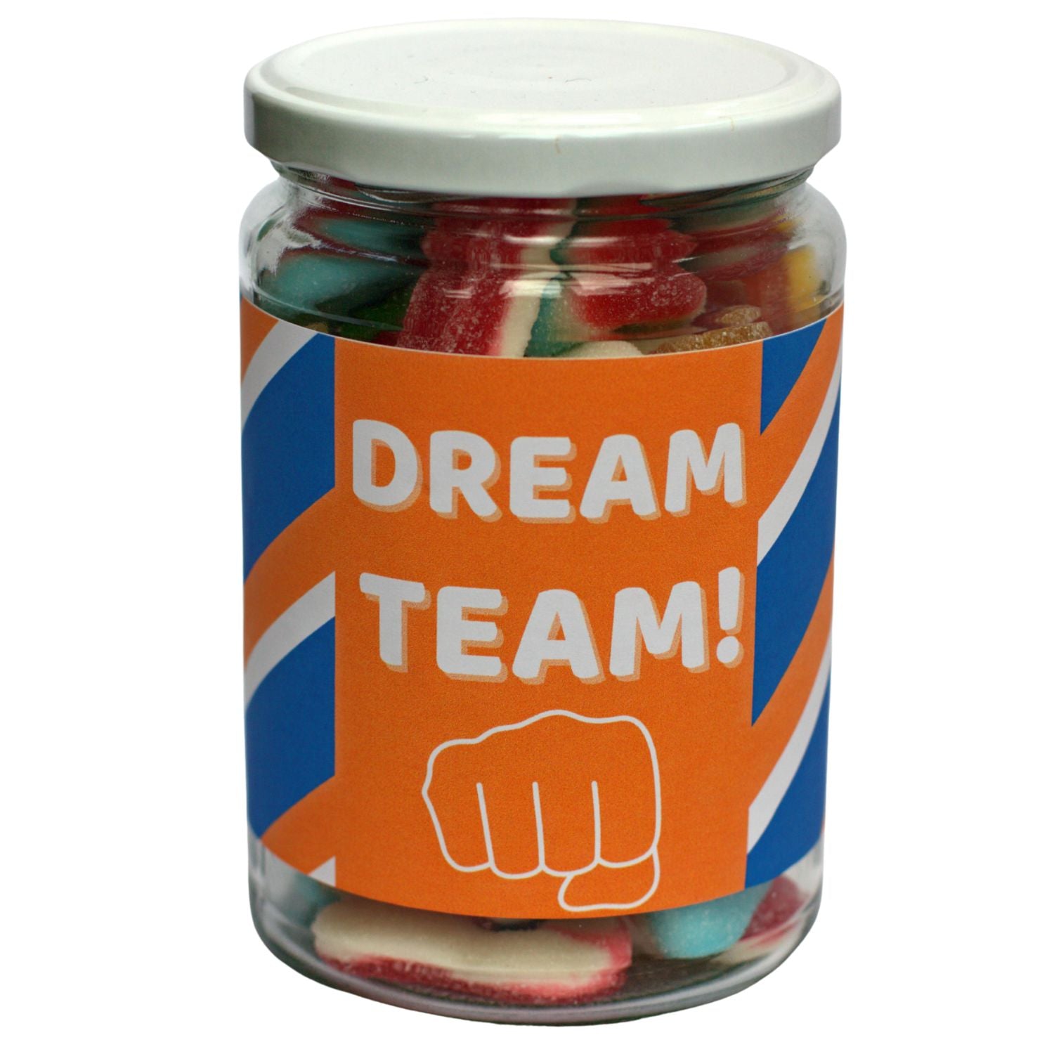 Ce bocal en verre contient 380 grammes de bonbons variés et arbore une étiquette audacieuse « Dream Team ! ». C'est le cadeau idéal pour remercier votre équipe, motiver vos collègues ou simplement savourer un moment convivial.