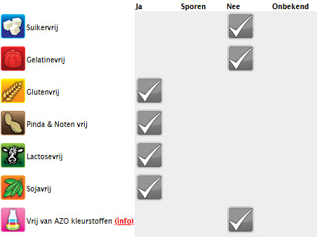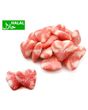 Ingrédients : Sirop de glucose, sucre, eau, gélatine de bœuf halal, amidon de pomme de terre modifié, acidulant : E270 ; arôme artificiel, colorants : E162, E129, E160a.