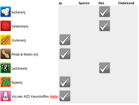 Ingrédients : Sirop de glucose, sucre, lait écrémé en poudre (6%), gélatine, acidifiant (acide citrique, acide lactique), gélifiant (pectine), arômes, colorants alimentaires (sureau, cassis, carotte noire, curcuma, citron, carthame, sirop de sucre caramélisé), huile de palme, agents d'enrobage (cires d'abeille blanche et jaune, cire de carnauba).